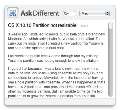 Ask Different is a question and answer site for power users of Apple hardware and software. Get Ask Different right for your Mac OS X Dashboard.
